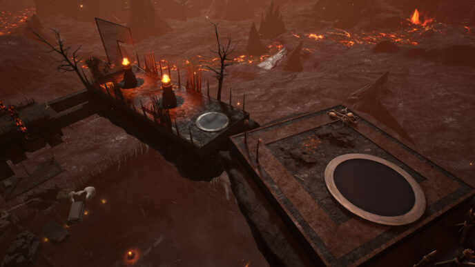 Bạn bắt đầu hành trình ở sâu thẳm địa ngục, nơi sức nóng thiêu đốt không ngừng bủa vây.
