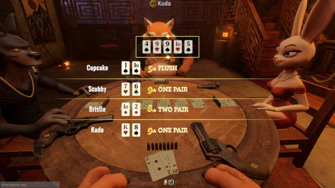 Mỗi bàn chơi trong Liar’s Bar gồm 4 người, tất cả đều: