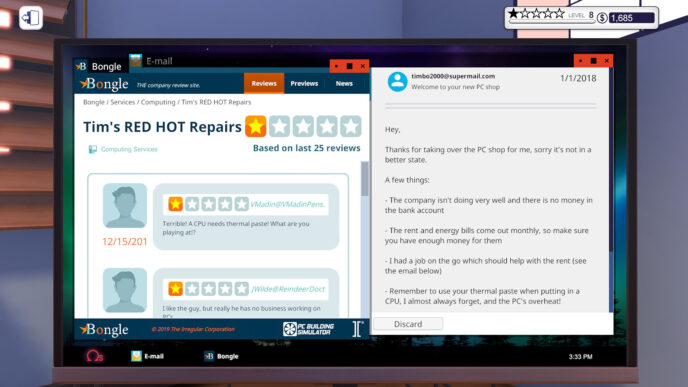 PC Building Simulator là tựa game mô phỏng cực kỳ chân thực, cho phép bạn xây dựng, sửa chữa và tối ưu PC từ những linh kiện ngoài đời thật 💻. Từ những ca sửa máy đơn giản cho khách hàng cho đến việc tạo ra những cỗ máy PC cao cấp khiến dân công nghệ phải trầm trồ – tất cả đều nằm trong tay bạn!